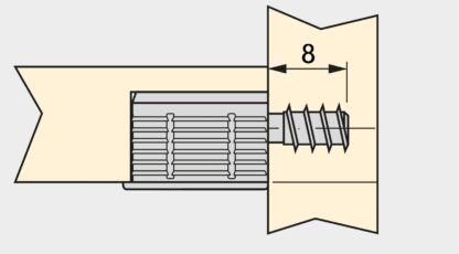 The connecting bolt 8084001 is inserted into the side wall of a piece of furniture, for example, and connected to an eccentric connection in the underside of a shelf.
