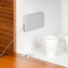 High-quality bar compartment flap holder with soft-close damper and self-closing mechanism, incl. Cover cap and mounting screws, from EMUCA, load capacity: 4 kg, grey. Application example for horizontal mounting
