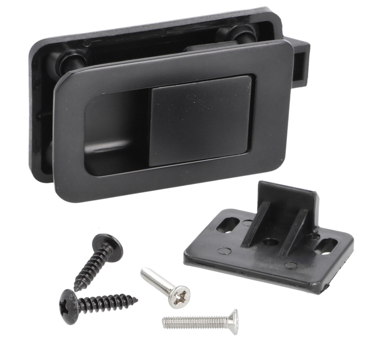 High-quality snap lock with folding handle, made of Zamak, surface: black, 14.03.091-0. Solid inlet handle with self-locking lock for caravan, yacht, caravan, private jet, motorhome and much more, by SISO Denmark