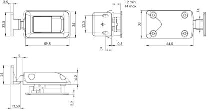 The 14.03.091-0 inlet handle is suitable for door thicknesses from 12 mm (15/32″) to 14 mm (35/64″).