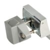 Practical snap lock 14.03.075-0, with spring damper for soft closing and self-locking lock, made of solid die-cast zinc, surface: chrome-plated, design: square