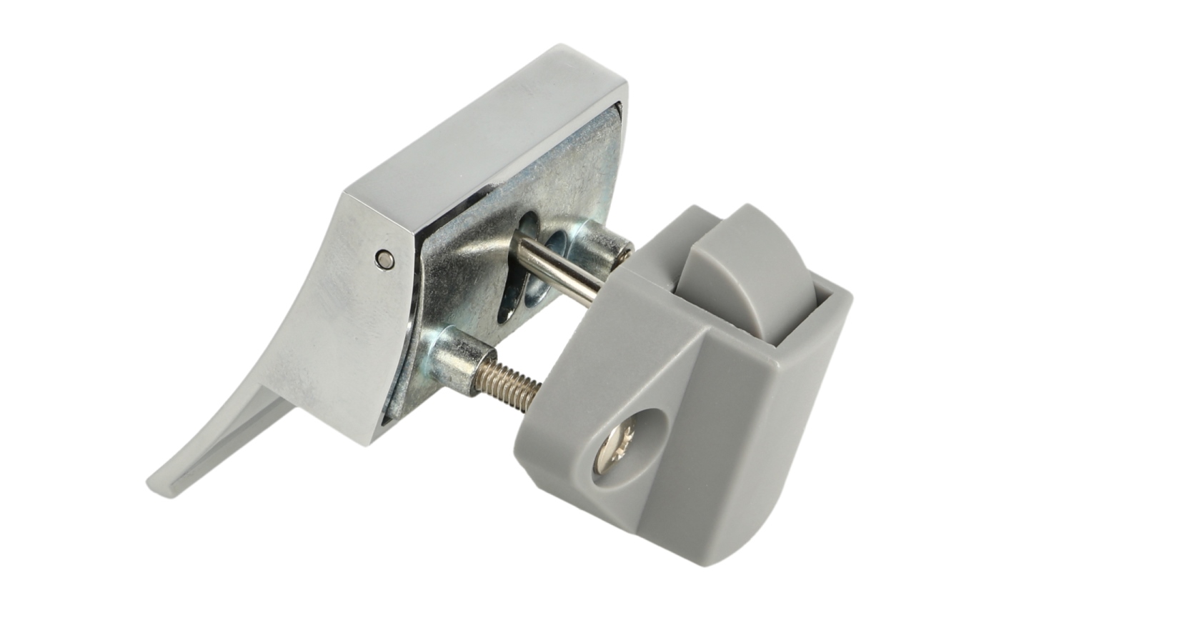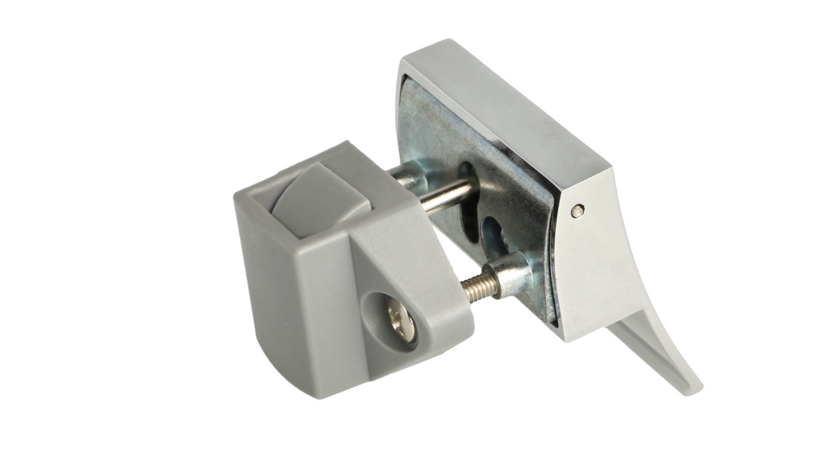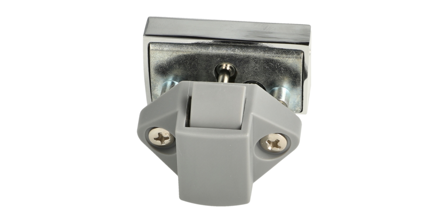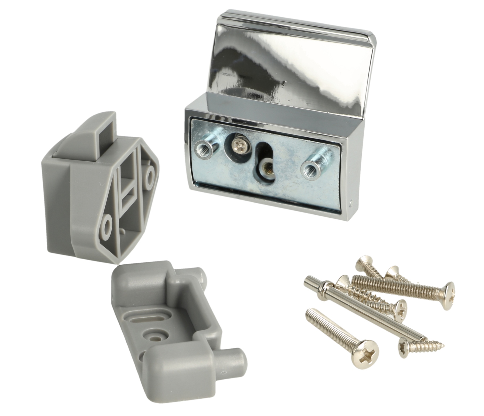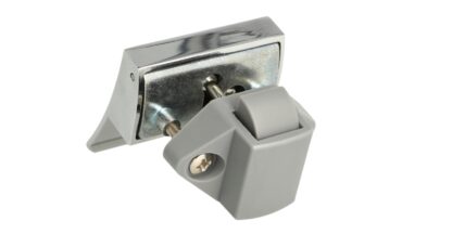 The special feature of the snap lock 14.03.075-0 is that the counterpart (strike plate) has two spring-loaded buffers. When closing, these buffers ensure that the door closes smoothly and does not make any noise while driving or flying.