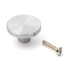 Round furniture knob handle made of aluminum alloy, finish: stainless steel look, 35 mm (1.4″) EXSEL35. Aluminum alloy handle knob for drawer, furniture door, kitchen cabinet, office cabinet and much more, by Sugatsune/LAMP® (Japan)