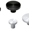 Round furniture knob handle made of aluminum alloy, finish: stainless steel look, EXSEL35, 35 mm, by Sugatsune. Application