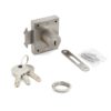 - 1 piece sliding door lock 7810K-24-SNI-L-D made of solid stainless steel, nickel-plated, satin-finished matt, version: keyed alike